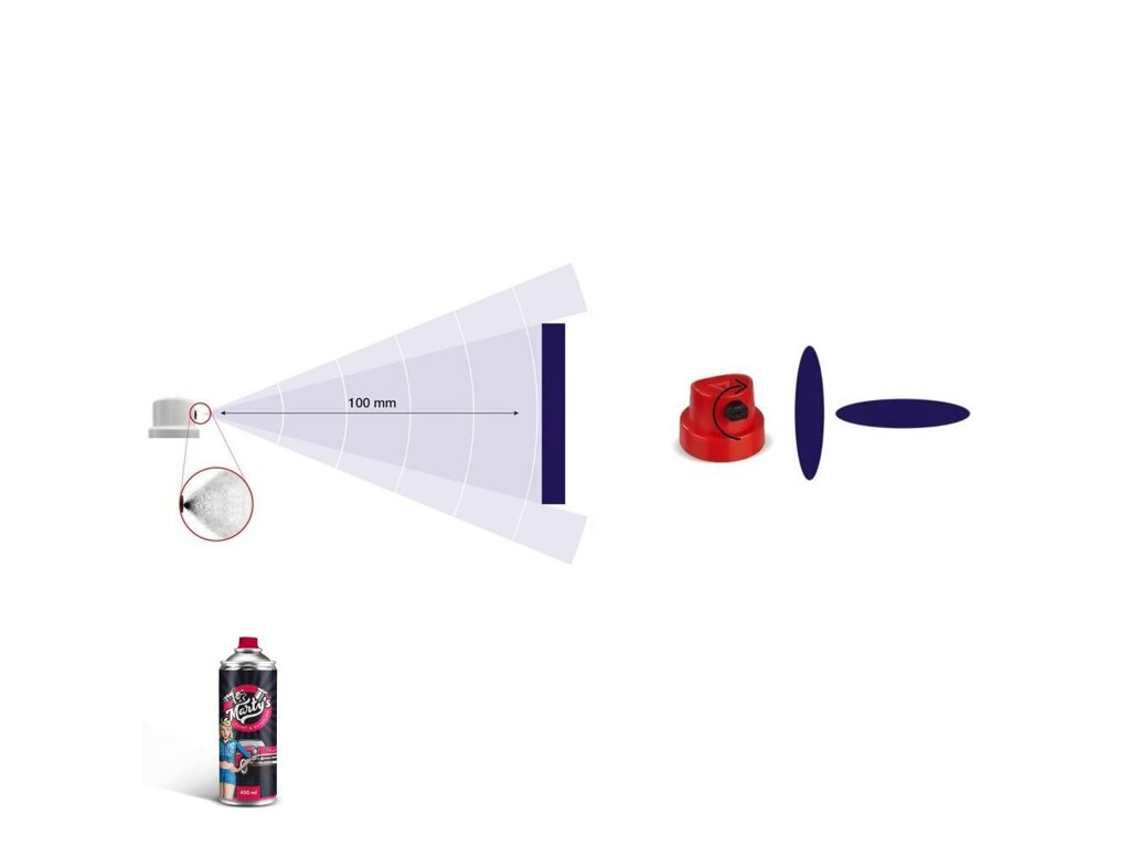 Naše spreje jsou vybaveny speciální variabilní tryskou, která umožňuje nastavit trojúhelníkový rozstřik barvy do libovolné vodorovné nebo svislé pozice.