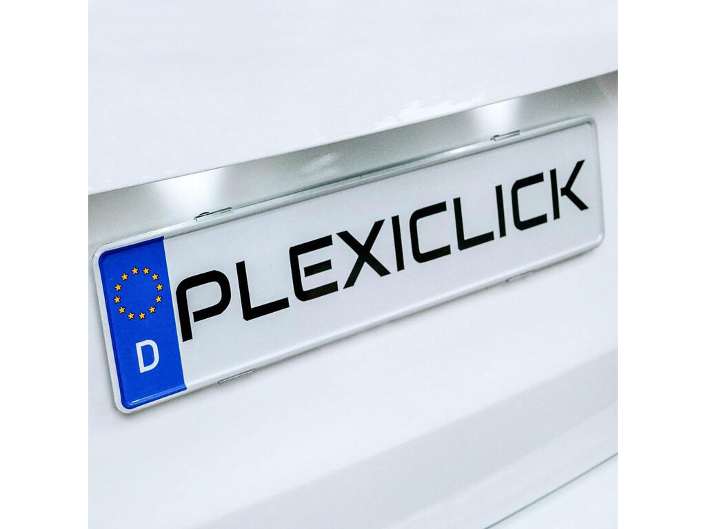 Různé státy mají různě velké registrační značky a proto německý výrobce vyrábí Plexiclick v různých velikostech. My máme v nabídce model Plexiclick V1: 110mm, který je určený pro značky vysoké 110 až 111 mm.