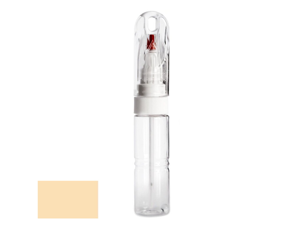 Samotná lahvička má velmi kompaktní velikost, srovnatelnou například s tlustším fixem. Její průhledné tělo obsahuje 20ml autolaku, namíchaného do přesného odstínu podle kódu výrobce vašeho vozu. Díky speciálnímu složení laku je barva po zaschnutí lesklá a není potřeba jí přelakovávat bezbarvým lakem bez ohledu na to, zda jde o klasický odstín nebo metalízu.