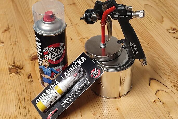 Pro získání maximální kvality povrchu je ale v tom případě nezbytné před broušením a leštěním nanést jako poslední vrstvu bezbarvý lak. Jednoduše ze spreje odstříknete potřebné množství laku - např. do víčka a pomocí retušovací tyčinky nanesete lak na opravovaný povrch.