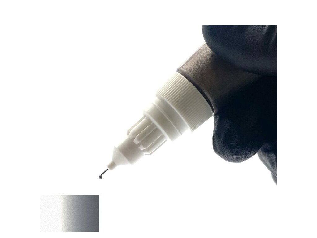 Speciální uzávěr lahvičky vám nabízí dva způsoby aplikace barvy: jehlu (neboli retušovací hrot) a jemný štětec. Nejmenší vady můžete zakápnout pomocí jehly kapkou barvy, větší škrábance můžete přetřít štětečkem. Jehla i štětec jsou integrované přímo do víčka lahvičky.