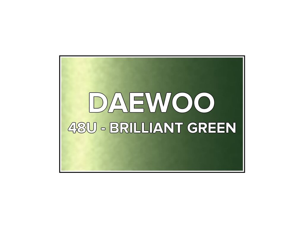Přečíst článekZelená metalíza Daewoo 48U Brilliant Green ve speciální retušovací lahvičce o objemu 20ml. Barva BRILLIANT GREEN přesně odpovídá autolaku 48U, používaného na vozech Daewoo v letech 2002-2005. Barva na všechny povrchy, snadná aplikace, 100%