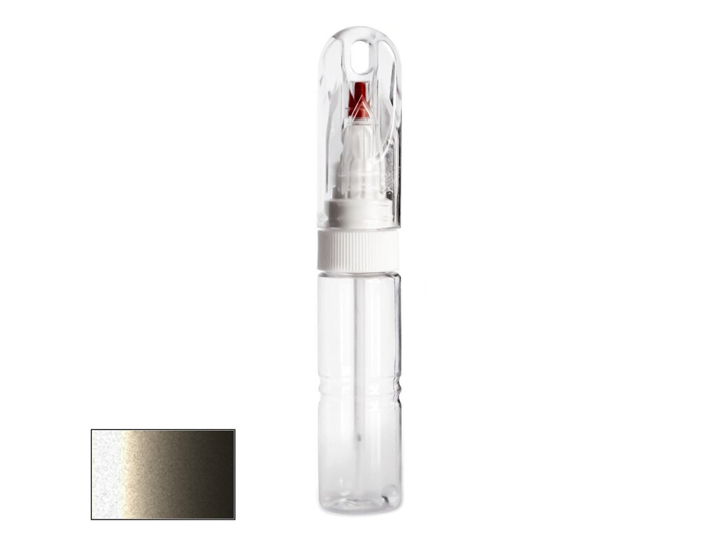 Samotná lahvička má velmi kompaktní velikost, srovnatelnou například s tlustším fixem. Její průhledné tělo obsahuje 20ml autolaku, namíchaného do přesného odstínu podle kódu výrobce vašeho vozu. Díky speciálnímu složení laku je barva po zaschnutí lesklá a není potřeba jí přelakovávat bezbarvým lakem bez ohledu na to, zda jde o klasický odstín nebo metalízu.