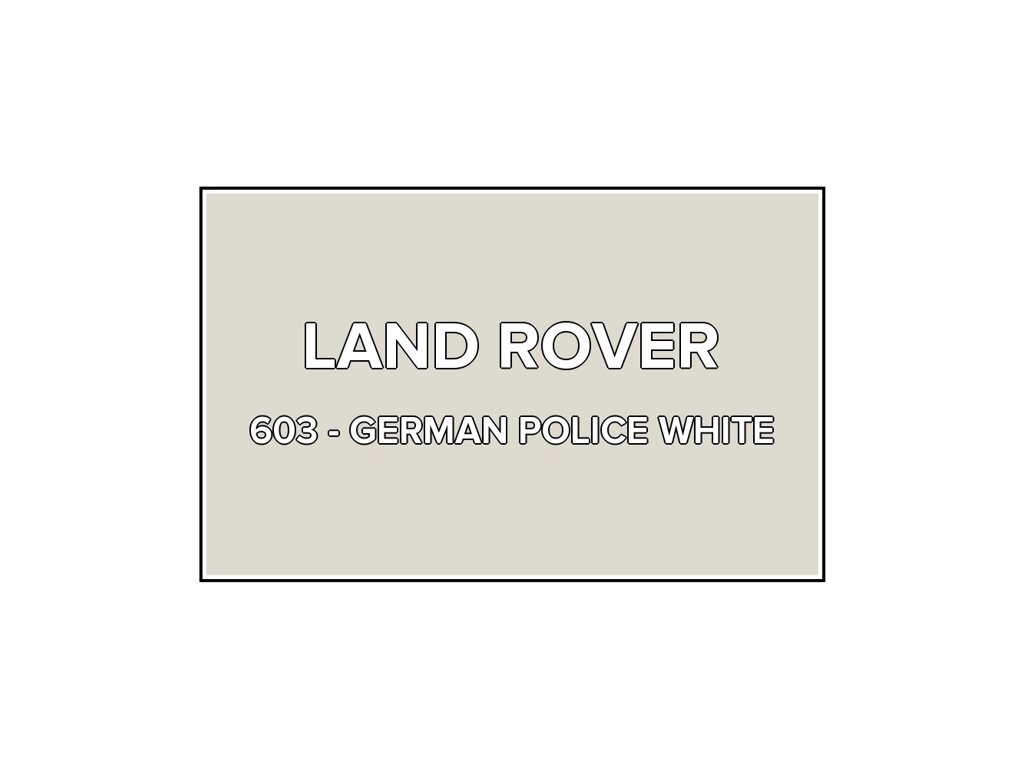 Přečíst článekBílá barva Land Rover 603 German Police White ve speciální retušovací lahvičce o objemu 20ml. Barva GERMAN POLICE WHITE přesně odpovídá autolaku 603, používaného na vozech Land Rover v roce 1999. Barva na všechny povrchy, snadná aplikace,