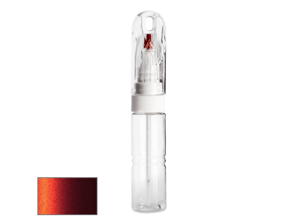 Samotná lahvička má velmi kompaktní velikost, srovnatelnou například s tlustším fixem. Její průhledné tělo obsahuje 20ml autolaku, namíchaného do přesného odstínu podle kódu výrobce vašeho vozu. Díky speciálnímu složení laku je barva po zaschnutí lesklá a není potřeba jí přelakovávat bezbarvým lakem bez ohledu na to, zda jde o klasický odstín nebo metalízu.
