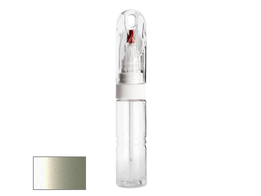 Samotná lahvička má velmi kompaktní velikost, srovnatelnou například s tlustším fixem. Její průhledné tělo obsahuje 20ml autolaku, namíchaného do přesného odstínu podle kódu výrobce vašeho vozu. Díky speciálnímu složení laku je barva po zaschnutí lesklá a není potřeba jí přelakovávat bezbarvým lakem bez ohledu na to, zda jde o klasický odstín nebo metalízu.