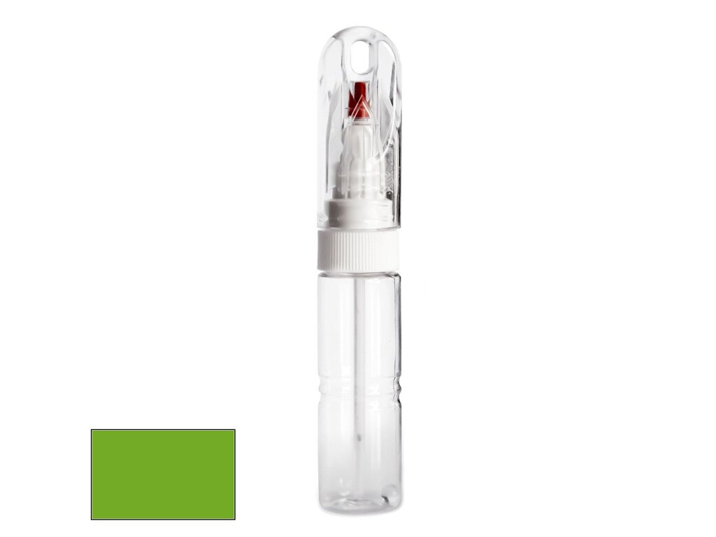 Samotná lahvička má velmi kompaktní velikost, srovnatelnou například s tlustším fixem. Její průhledné tělo obsahuje 20ml autolaku, namíchaného do přesného odstínu podle kódu výrobce vašeho vozu. Díky speciálnímu složení laku je barva po zaschnutí lesklá a není potřeba jí přelakovávat bezbarvým lakem bez ohledu na to, zda jde o klasický odstín nebo metalízu.