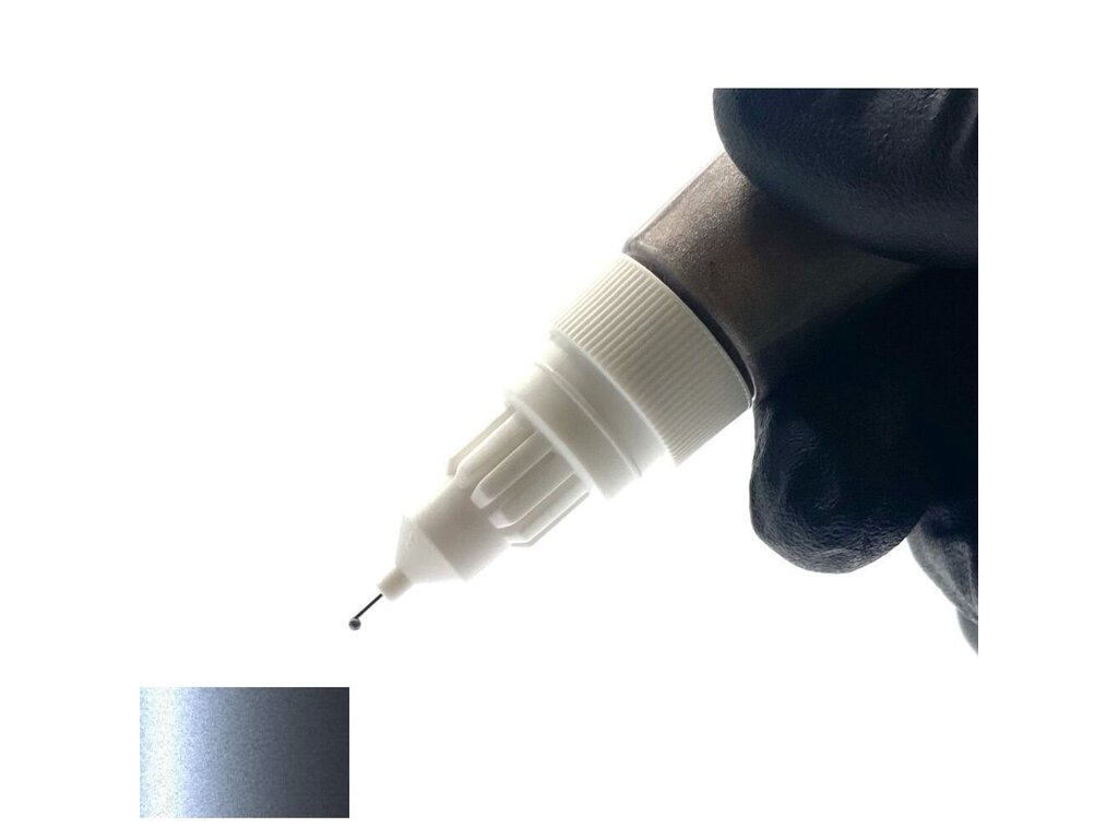 Speciální uzávěr lahvičky vám nabízí dva způsoby aplikace barvy: jehlu (neboli retušovací hrot) a jemný štětec. Nejmenší vady můžete zakápnout pomocí jehly kapkou barvy, větší škrábance můžete přetřít štětečkem. Jehla i štětec jsou integrované přímo do víčka lahvičky.