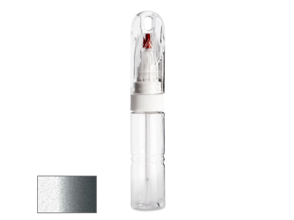 Samotná lahvička má velmi kompaktní velikost, srovnatelnou například s tlustším fixem. Její průhledné tělo obsahuje 20ml autolaku, namíchaného do přesného odstínu podle kódu výrobce vašeho vozu. Díky speciálnímu složení laku je barva po zaschnutí lesklá a není potřeba jí přelakovávat bezbarvým lakem bez ohledu na to, zda jde o klasický odstín nebo metalízu.