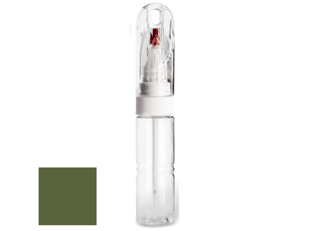 umístěným pod průhledným víčkem. Je to ideální prostředek pro opravu miniaturních poškození, jako jsou typické tečky od úderů kamínků nebo jiných nástrojů. Stačí stisknout plastové tělo lahvičky a na konci hrotu se objeví kapička barvy potřebná pro přesné a citlivé zaretušování poškození bez přesahu. Toto víčko má navíc červenou plastovou krytku, která obepíná tento hrot a brání volnému vytékání a nadměrnému zasychání barvy.