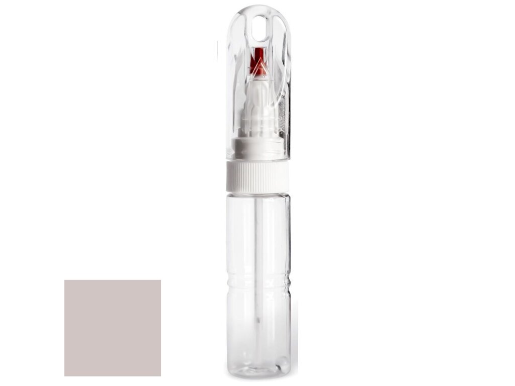 umístěným pod průhledným víčkem. Je to ideální prostředek pro opravu miniaturních poškození, jako jsou typické tečky od úderů kamínků nebo jiných nástrojů. Stačí stisknout plastové tělo lahvičky a na konci hrotu se objeví kapička barvy potřebná pro přesné a citlivé zaretušování poškození bez přesahu. Toto víčko má navíc červenou plastovou krytku, která obepíná tento hrot a brání volnému vytékání a nadměrnému zasychání barvy.