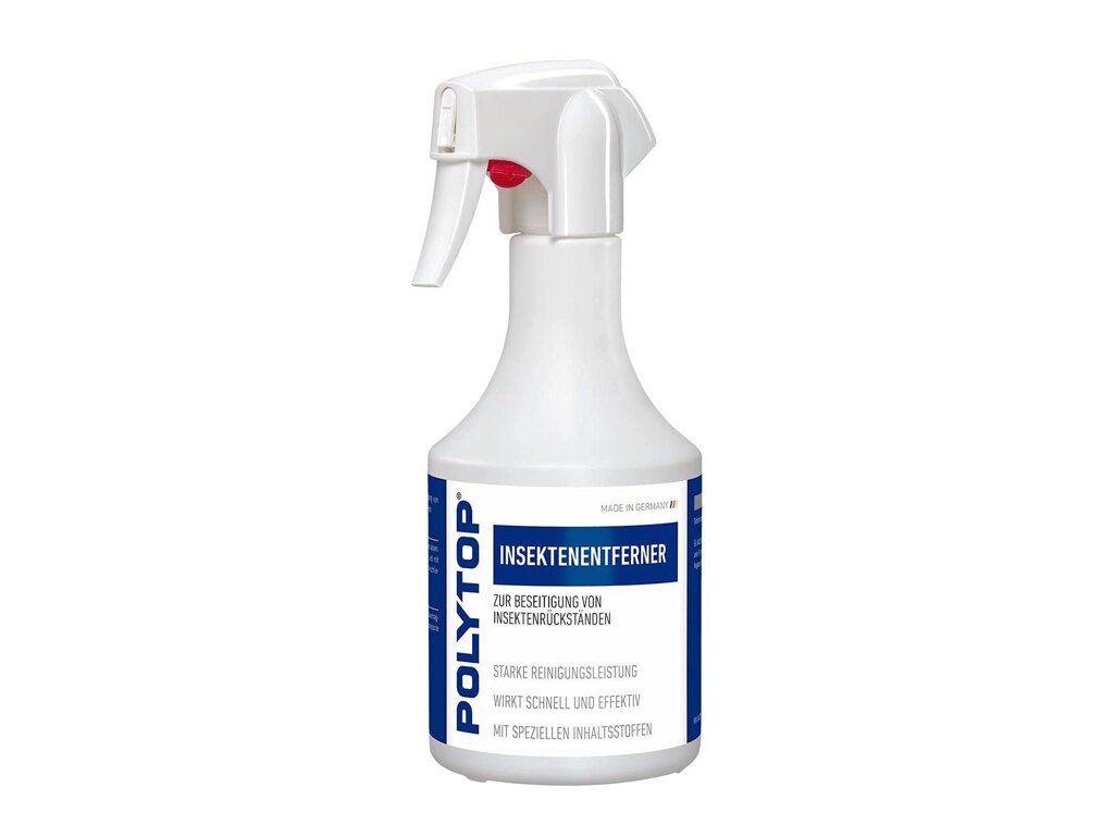 Vysoce účinný odstraňovač hmyzu německé značky Polytop určen pro rychlé odstranění zbytků hmyzu na skle, lakovaných površích a plastových dílech.