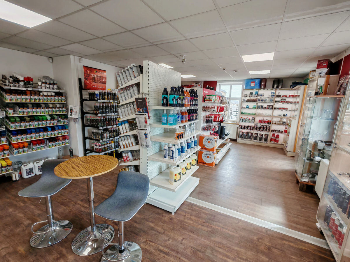 Naše kamenná prodejna v Dolní Branné nabízí nejenom míchání autolaků na zakázku přesně pro váš vůz, ale i veškeré další příslušenství, potřebné pro lakování aut. Skladem máme vše potřebné od nejrůznějších ředidel, čističů a brusných materiálů až například po stříkací pistole nebo obleky pro lakování. V nabídce máme jak zboží naší vlastní značky Marty's, tak i zboží od řady uznávaných světových výrobců.