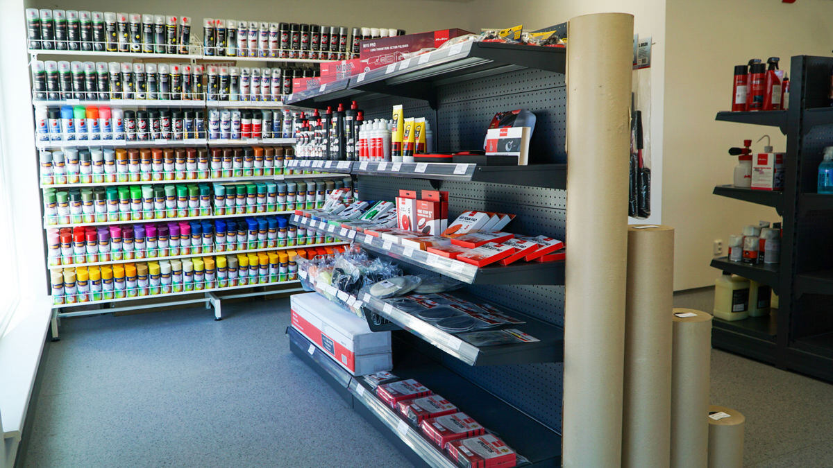 Naše kamenná prodejna v Ústí nad Labem nabízí nejenom míchání autolaků na zakázku přesně pro váš vůz, ale i veškeré další příslušenství, potřebné pro lakování aut. Skladem máme vše potřebné od nejrůznějších ředidel, čističů a brusných materiálů až například po stříkací pistole nebo obleky pro lakování. V nabídce máme jak zboží naší vlastní značky Marty's, tak i zboží od řady uznávaných světových výrobců.