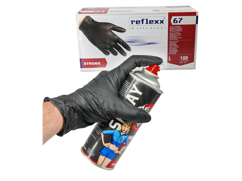 Černé nitrilové rukavice bez pudru Reflexx 67 Strong najdou při lakování řadu uplatnění. Skvělé jsou například při míchání nebo přípravě nátěrů, kdy zabrání podráždění pokožky. Při samotném lakování vám tyto jednorázové rukavice budou chránit pokožku, aniž by vás jakkoliv omezovaly při práci.
