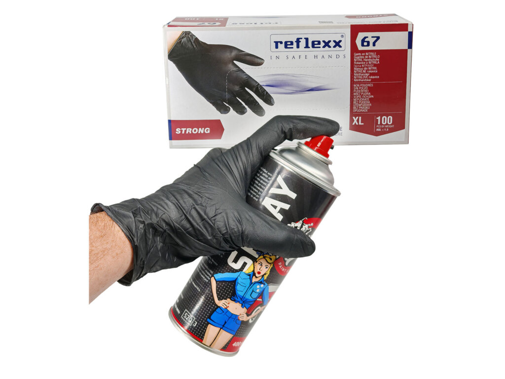 Černé nitrilové rukavice bez pudru Reflexx 67 Strong najdou při lakování řadu uplatnění. Skvělé jsou například při míchání nebo přípravě nátěrů, kdy zabrání podráždění pokožky. Při samotném lakování vám tyto jednorázové rukavice budou chránit pokožku, aniž by vás jakkoliv omezovaly při práci.