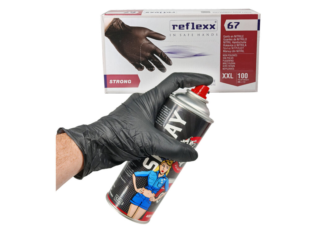Černé nitrilové rukavice bez pudru Reflexx 67 Strong najdou při lakování řadu uplatnění. Skvělé jsou například při míchání nebo přípravě nátěrů, kdy zabrání podráždění pokožky. Při samotném lakování vám tyto jednorázové rukavice budou chránit pokožku, aniž by vás jakkoliv omezovaly při práci.