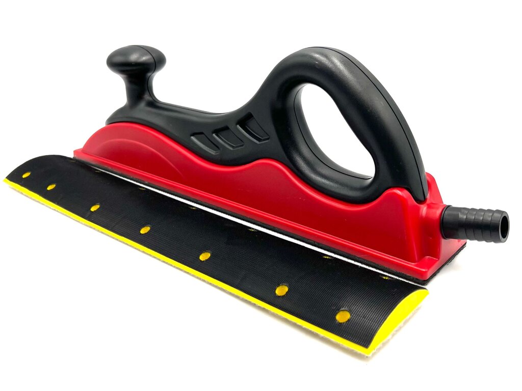 obsahuje lehké plastové náčiní pro broušení. Všechny hoblíky jsou opatřeny suchým zipem a výstupem pro hadici na odsávání. Navíc v kufru naleznete dva ruční brusné bloky.