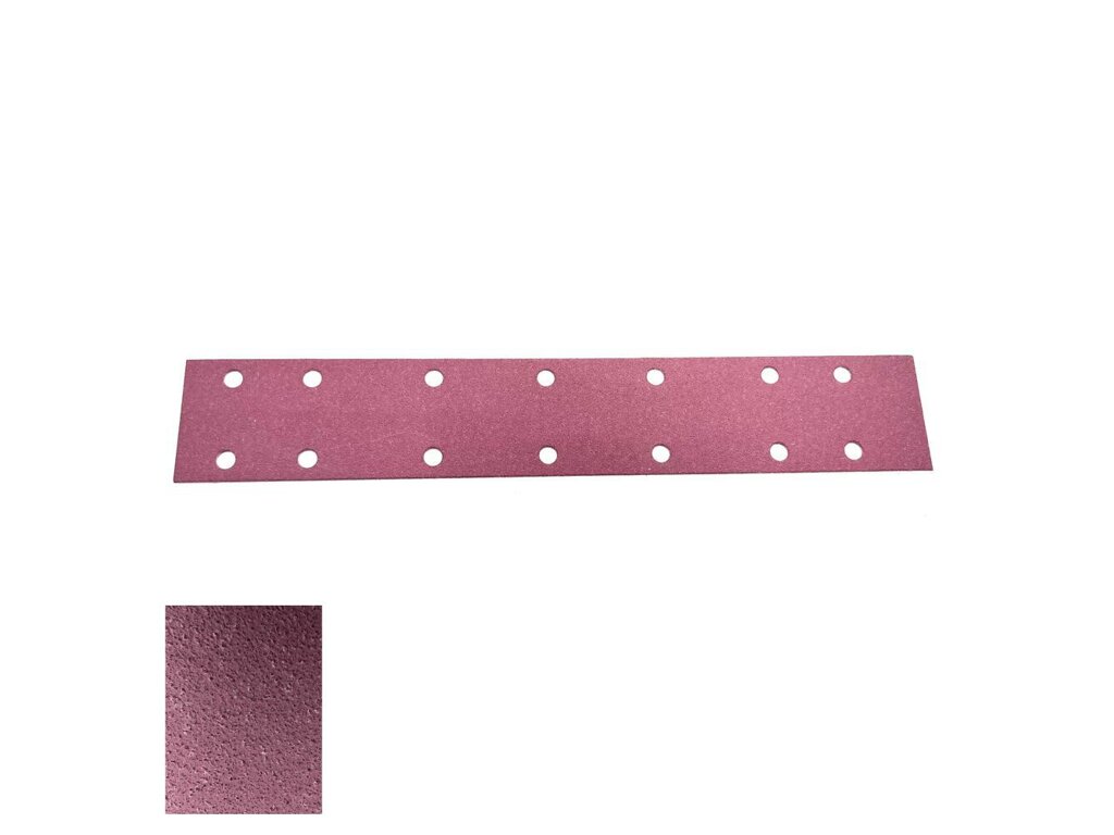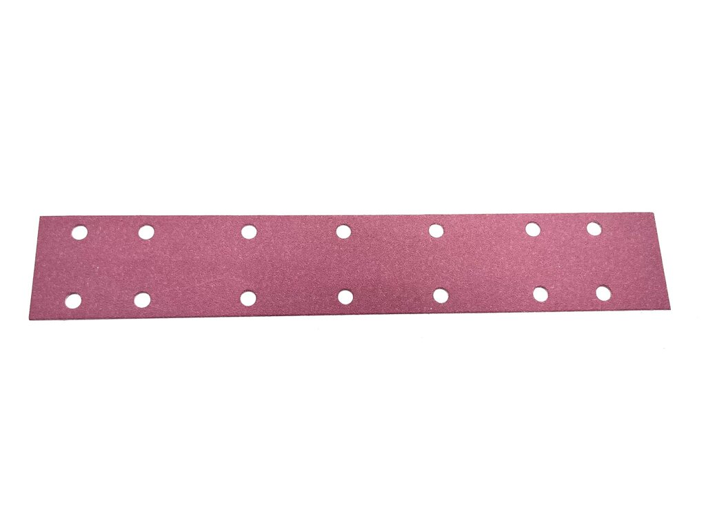 Velikost je 70x420mm, má 14 děr pro odsávání a nabízíme ho v různých hrubostech: P80, P120, P180 a P240