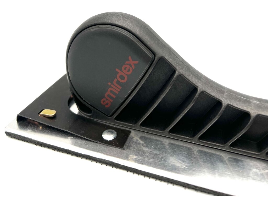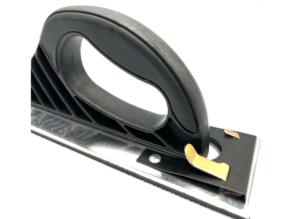 are mânere din plastic turnat pentru o prindere ușoară și fermă, ceea ce o face confortabilă pentru a lucra cu o distribuție maximă și precizie a forței. Căptușeala din spumă moale, precum și suportul din metal dur garantează uniformitatea suprafeței de șlefuit (de ex. chit,...).