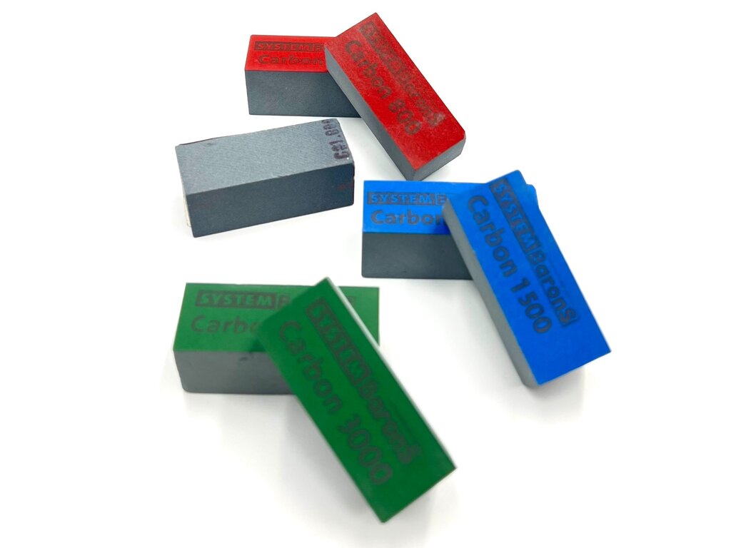 má rozměry 20x20x50mm, zrnitosti nabízíme P800, P1000, P1500 a P3000. Doporučujeme před použitím kameny namočit (nebobtnají, zachovávají si svůj tvar). Broušení provádějte jen přímočarým pohybem! Lze je použít vícekrát.