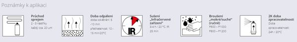 je velmi rychleschnoucí s vynikající plnivostí a excelentním rozlivem. Lze jej použít na bodové nástřiky a střední plochy. Má vysokou tloušťku vrstvy, velmi dobře vyplňuje póry. Rychle schne a je vhodný pro IR sušení.