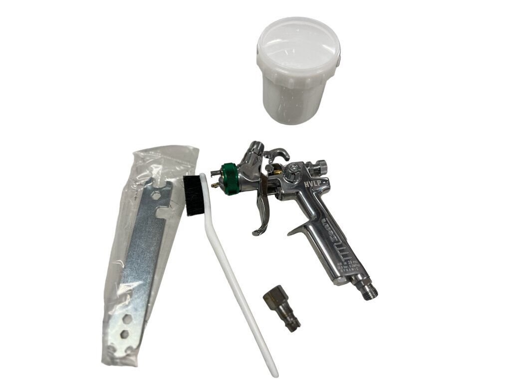 Sada obsahuje pistoli STAR MINI HPVP, údržbový klíč, kartáč, estetický a pevný kartonový obal.