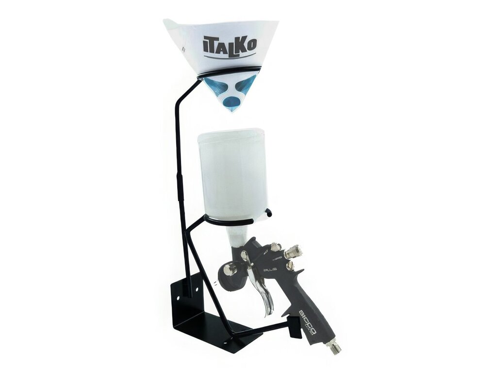 Kovová dvoudílná konstrukce umožňuje sundání otočného držáku na papírovou nebo plastovou filtrační nálevku. Díky stojanu můžete pohodlně nalévat materiál do nádoby stříkací pistole a zároveň jej filtrovat. Samotný stojan má nízkou váhu a velice snadno se udržuje.